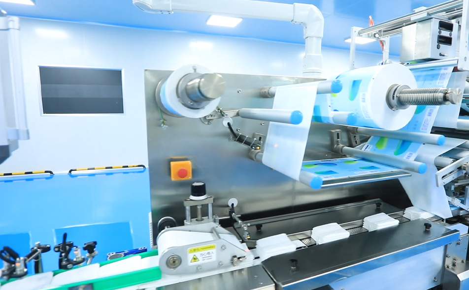 CD-2000H-16L全自動(dòng)濕巾生產(chǎn)線生產(chǎn)一次性家庭清潔用濕巾或嬰兒濕巾。是由8組原布架1切2帶自動(dòng)分切,折疊、加藥液、定長度切斷、計(jì)數(shù)堆垛、再自動(dòng)輸送到包裝機(jī)進(jìn)行包裝的機(jī)器。本機(jī)原材料使用不停機(jī)自動(dòng)換料裝置,減少更換原材料的時(shí)間,有效的提高了工作效率,布接頭在線檢測(cè)和駁接口在線剔除,增加張力控制與自動(dòng)糾偏功能。所有過程從原料到包裝成品都在機(jī)器上完成,生產(chǎn)過程快速、衛(wèi)生。主折疊機(jī)與包裝機(jī)可以自動(dòng)連接使用又能在生產(chǎn)特殊規(guī)格產(chǎn)品時(shí)分開獨(dú)立使用,能使客戶最大限度利用機(jī)器、產(chǎn)生最大的效益。