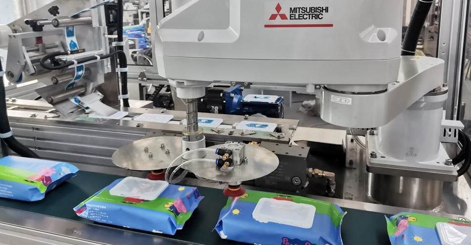 本機(jī)使用三菱機(jī)器人高剛性機(jī)械臂,視覺識別技術(shù)、傳送帶跟著技術(shù)等完美結(jié)合。在線可以完成自動取蓋、貼標(biāo)、涂膠、粘蓋等一系列動作,更換蓋子規(guī)格時,在觸摸屏操作切換。節(jié)省人力,從而降低用工成本。極大地提高生產(chǎn)效率和產(chǎn)品合格率。